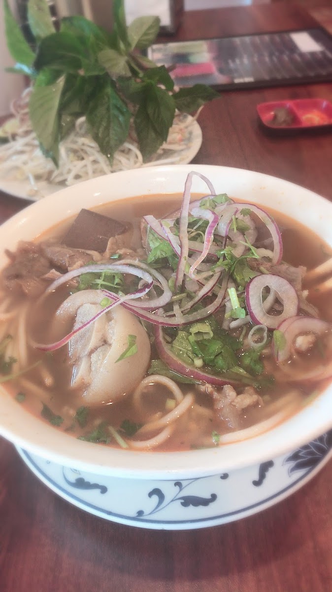 I enjoyed my Bún bò Huế. The broth did lack some flavor, but it didn't bother me too much since there were various items to add to the soup. I loved how I was given separate plates of chopped-up chili peppers, sliced Chả (pork roll), and Mắm Ruốc (shrimp paste). I love how they already had chili oil on the table, so I didn't have to ask like most places I've been to. I'd give my meal a 4.5/5. If the broth had a bit of flavor, then it would be been a solid 5. My wife ordered Cơm Đặc Biệt Phương Nam. She said that it did come with all 7 items as it said, but the portions were equivalent to what would be paid less elsewhere. She let me know that for the same price, she would've gotten a more generous portion at a different restaurant. The flavor was there though, so she gives it a 4/5. She recommends only ordering this particular dish if you're craving it, but your money is better spent on the noodle soups here. Overall experience was a 4/5. Customer service was great. Waiter was very attentive to our table. I would definitely recommend this place. First place to offer more sides to the Bún bò Huế. I had fun with my dish.